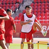 一夜明け、さっそく久保は真っ赤な練習着に身を包んで初のチーム練習に臨んだ。同じ日にギャンガンからの完全移籍が決まったフランス人MF、ヤニス・サリビュルとともに、チームメイトたちから頭をポンポンと叩かれるニューカマー専用の儀式も体験。和気あいあいとしたムードのなかで、汗を流した。