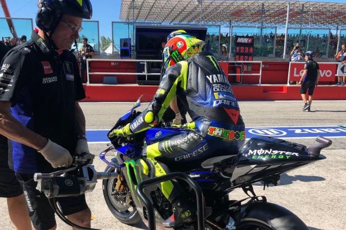 Pembalap Monster Energy Yamaha, Valentino Rossi saat menguji motornya di Sirkuit Misano, San Marino, Sabtu (14/9/2019)