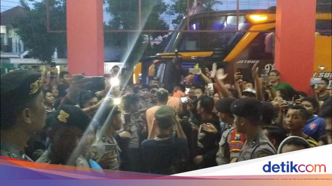 Dalam kawalan ketat petugas keamanan, begitu para pemain Arema masuk, pintu gerbang stadion langsung ditutup.