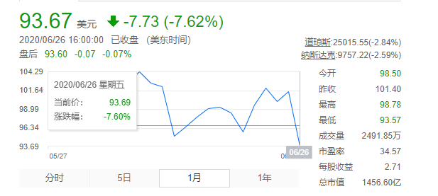 受此消息影响,耐克的股价顺势下跌,截至美股上一个交易日收盘,耐克股价为93美元,为近一个月以来最低点。