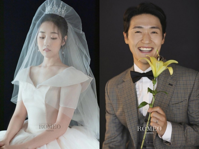 | 개그우먼 겸 배우 박보미와 예비 남편 축구선수 박요한/사진제공=해피메리드컴퍼니, 웨딩디렉터봉드, 투브라이드, 로자스포사, 로미오프렌즈, 순수메이크업, 로더플라워, 스플렌디노, 마인모리, 규중칠우, 정민경스타일리스트 |