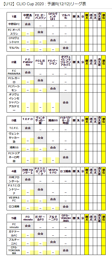 ◆【U12】CLIO Cup 2020公式サイト